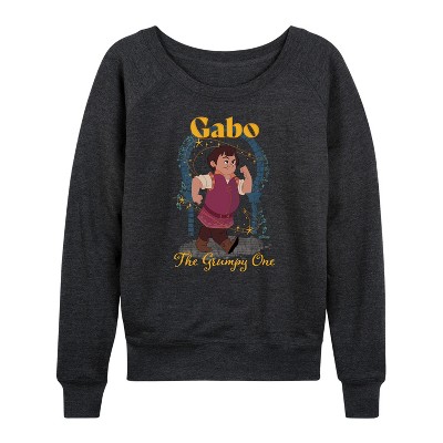 Women's Disney Mickey's Pumpkin Lightweight French Terry Wide Neck Long Sleeve Graphic Shirt - Heather Charcoal - 1X