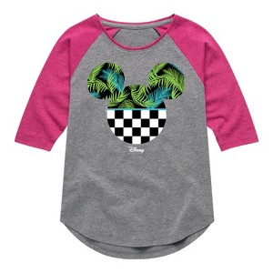 Girls' - Disney - Mickey Silhouette Tropical Vibe Shirt Tail Raglan Graphic T-shirt - 1 of 2