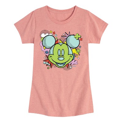 Girls' - Disney - Mickey Skateboarding Checkered Circle Fitted Short Sleeve Graphic T-Shirt