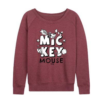 Women's - Disney - Mickey Universe Calling Lightweight French Terry Wide Neck Long Sleeve Graphic Shirt