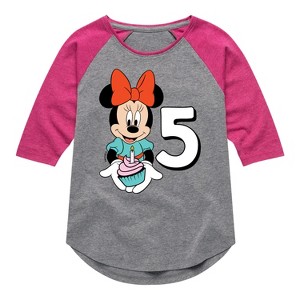 Girls' - Disney - Minnie Birthday 5 Shirt Tail Raglan Graphic T-shirt - 1 of 3