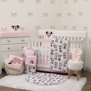 - Adorably designed in shades of soft pink, white and gray. Coordinates with a full line of Exploration Minnie Mouse nursery decor and accessories.