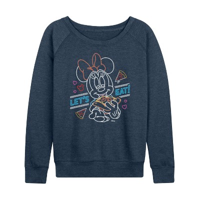Women's Disney Minnie Mouse Cute Lightweight French Terry Wide Neck Long Sleeve Graphic Shirt - Heather Indigo - X-Large