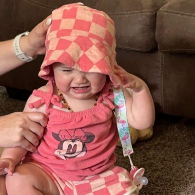 This is such a cute retro looking set for little ones! Love the terry material and the matching hat! I do think it runs a tiny bit big, but we appreciated having a little room to grow!