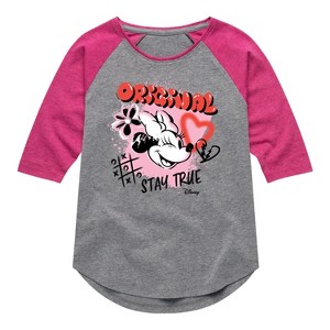 Disney - Minnie Mouse Original Stay True - Toddler & Youth Girls Raglan Graphic T-Shirt - Add a touch of magic to your wardrobe with this graphic apparel featuring iconic Disney designs. Showcasing beloved characters and classic imagery, each piece combines nostalgic charm with modern style—perfect for Disney fans of all ages. Whether you're headed to the parks or just adding whimsy to your everyday look, these graphics bring the magic to life.