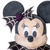 A case of the creepy-crawlies has never looked cuter. Plush Minnie's black widow costume hits a soft spot for the spooky season. In a shiny satin dress with weblike mesh trim, plus spider-web print capelet and bow, she's an irresistible treat for your tiny Halloween tricksters! Beware her allure! Genuine, Original, Authentic Disney Store Product.