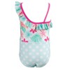 • Quick drying children’s one-piece swimsuit with cute and fun character designs that your active little girl can’t wait to wear in the water at the beach or pool