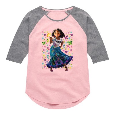 Disney's Encanto - Mirabel Floral Butterflies - Toddler And Youth Girls Raglan Graphic T-Shirt - Experience the magic of Encanto with graphic apparel that features the Madrigal family. Celebrate the vibrant, magical energy of this beloved Disney film with colorful designs.