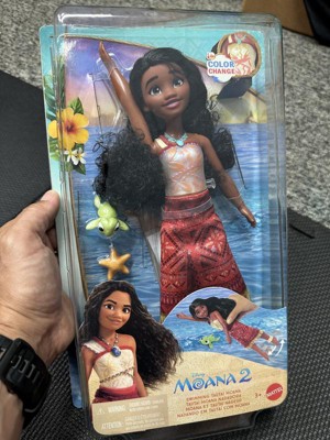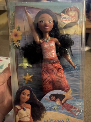 Disney Moana 2 Toys, Swimming Tautai Moana Fashion Doll with 2 Accessories & Color-Change Bodice