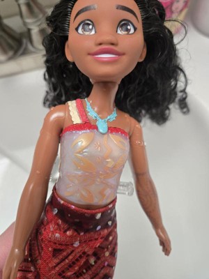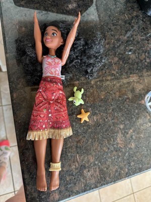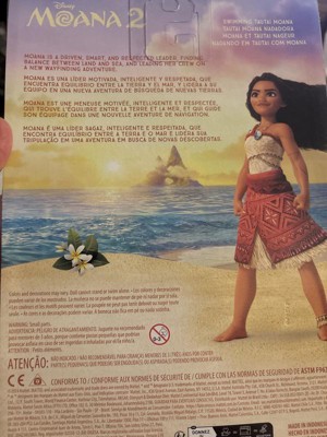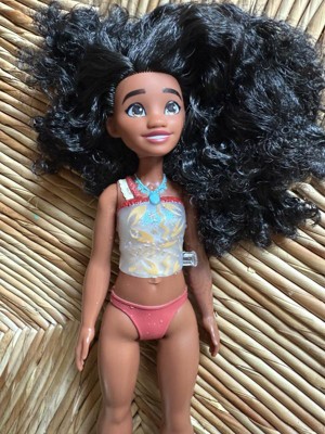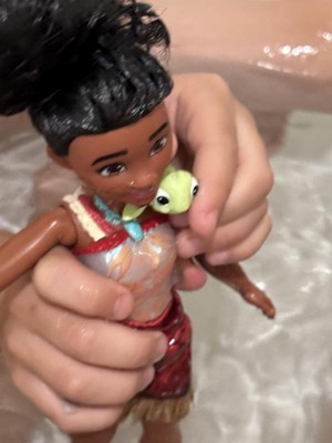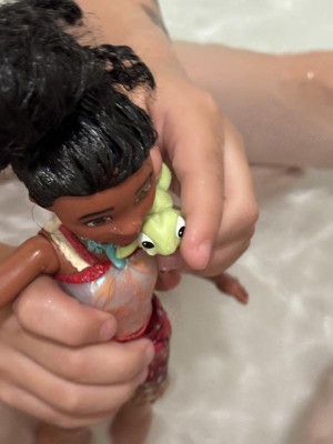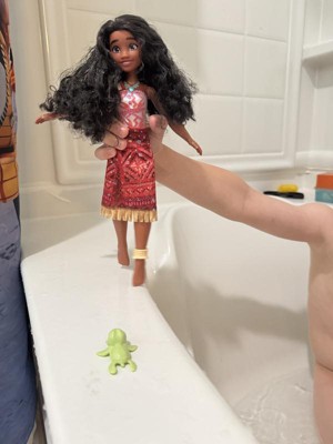 [This review was collected as part of a promotion.] This beautiful Moana doll makes swimming and bath time so much fun. I love her curls. We have an older Moana doll and I love this ones hair so much more. My daughter loves that she can make her swim and kick her feet in the water. She even came with a couple of small "items" like a sea star. Her tattoos show when the water temperature changes which makes for an extra fun little piece.