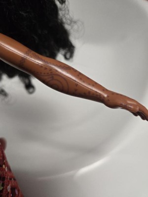 [This review was collected as part of a promotion.] This is the cutest doll ! She has such an expressive face and long curly hair to brush or style . She comes wearing a necklace, an anklet, a skirt and color-changing bodice just add warm water to activate and watch it change to yellow ! Moana doll has articulated arms, head and legs that kick in the water with a push of a button on Moana doll's waist , super easy for any kiddo to use and hours of fun play in or out of the water . She also has a tattoo on her arm .