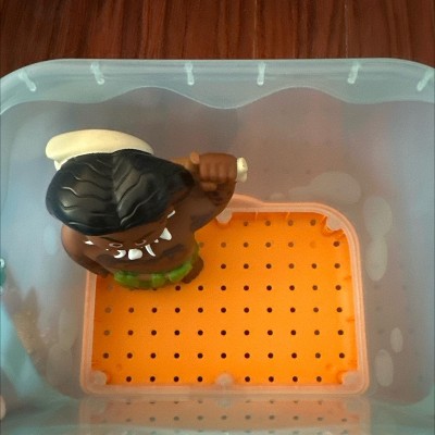 [This review was collected as part of a promotion.] This is sooo adorable. The characters are very like the cartoon and not weird looking. The caddy suctions well in my bathtub to keep it tidy. I took off a star because bath toys unable to fully open can mold.