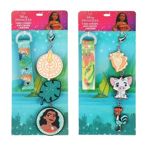 Bring Moana along on every adventure with these fun bag clips! Each set includes a strap and three charms featuring Moana and other icons. Perfect for customizing backpacks, lunchboxes, or totes, kids can mix and match charms or collect both sets to complete their magical Moana look.