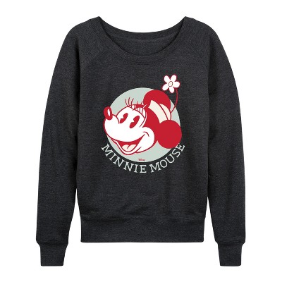 Women's - Disney - Minnie Mouse Brain Has Too Many Tabs Open Lightweight French Terry Wide Neck Long Sleeve Graphic Shirt