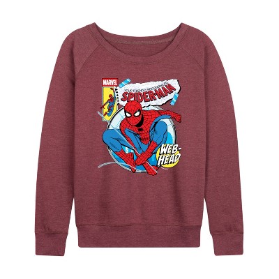 Women's Disney Never Judge A Book By Its' Cover Lightweight French Terry Wide Neck Long Sleeve Graphic Shirt - Heather Maroon - Small