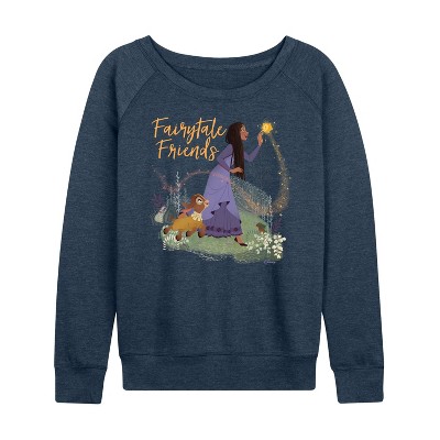 Women's Disney Part Of Your World Lightweight French Terry Wide Neck Long Sleeve Graphic Shirt - Heather Indigo - Small