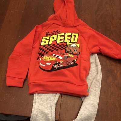 Officially licensed Disney Lightning McQueen toddler boys cute, comfy and stylish long sleeve graphic hooded sweatshirt and pants