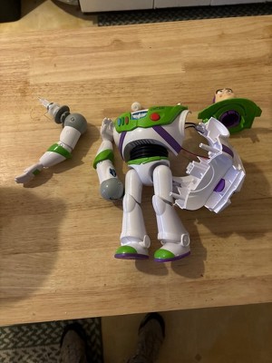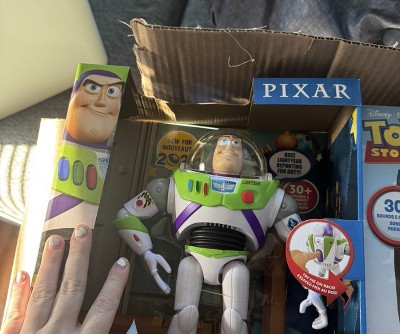 There's a secret mission in uncharted space. Let's go! This large, talking, action-chopping DIsney and Pixar Buzz Lightyear will bring big thrills and laughter to fans of the Space Ranger from Disney and Pixar's Toy Story. This 10-in scale action figure of the spaceman speaks 30+ movie phrases, like "To infinity, and beyond!" by activating the red button on his chest. And that's not all! He also makes a dynamic chopping action complete with sounds -just press the button on his back! With multiple movable joints in addition to the special features, fans will discover their favorite toy's interactive fun on a large scale. This Buzz Lightyear figure has a truly movie-authentic look with his iconic Space Ranger suit, complete with a helmet that opens and closes. Kids can relive all their favorite scenes from the Toy Story films, with the phrases and action coming directly from Buzz himself. Colors, dimensions and decorations may vary.