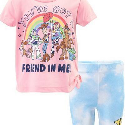 Bring magic to everyday adventures with this officially licensed Disney 2-piece set, featuring a short-sleeve graphic tee and coordinating shorts in fun styles starring Moana, Winnie the Pooh, Stitch, Toy Story, and more. Whether it's ruffle hems, bike shorts, or floral prints, each outfit delivers playful character charm and all-day comfort.