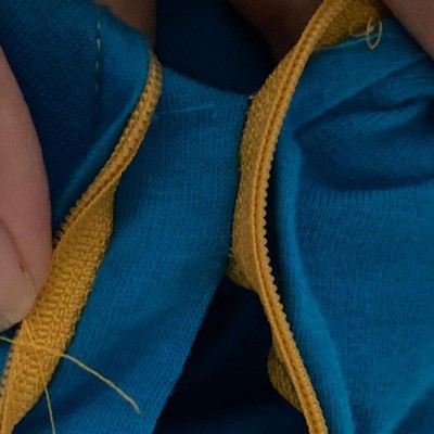 The zipper came sewn into the fabric so it could not go down all the way. We also purchased the buzz light year outfit and had many problems from just washing it. Cheap quality for the price, look elsewhere