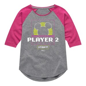 Disney - Player 2 Start - Toddler & Youth Girls Raglan Graphic T-Shirt - Add a touch of magic to your wardrobe with this graphic apparel featuring iconic Disney designs. Showcasing beloved characters and classic imagery, each piece combines nostalgic charm with modern style—perfect for Disney fans of all ages. Whether you're headed to the parks or just adding whimsy to your everyday look, these graphics bring the magic to life.