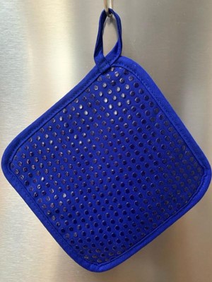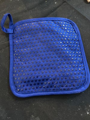 [This review was collected as part of a promotion.] So........I want to know who designed this and made it mostly white. My husband used this first, and he's not the cleanest chef in the world. Long story short, this pot holder got dirty. I washed it. The stain didn't fully come out, which is fine.... it's a tool and not a decoration, and the fabric shrunk more on the top than the bottom, making the whole thing kinda wrinkly all over. Aesthetics aside, I like this pot holder. It's a thick material, so I'm not worried about the heat coming through the fabric. The silicone dots on the back keep it from sliding around. The size is generous and not too small.