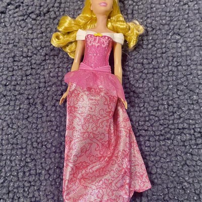 Meet this Aurora doll, inspired by the positive and imaginative princess from Disney's Sleeping Beauty. This posable fashion doll is shown in a sparkling outfit and accessories that include shoes and a tiara. In her signature look from the movie, this Aurora doll is ready for any adventure! Doll cannot stand alone. Colors and decorations may vary.