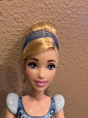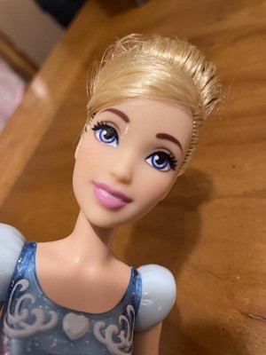 Meet this Cinderella doll, inspired by the kind and courageous princess from the classic Disney movie! This posable fashion doll is shown in a sparkling outfit and accessories that include shoes and a tiara. In her signature look from the movie, this Cinderella doll is ready for any adventure! Doll cannot stand alone. Colors and decorations may vary.