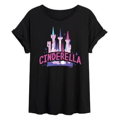 Women's Disney Princess Cinderella Kiss Oversized Graphic T-Shirt - Black - Small