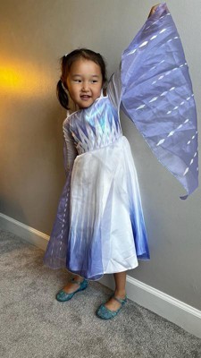 [This review was collected as part of a promotion.] This is a really cute Elsa costume! My daughter thought it was so pretty! That being said, as pretty as the sleeves are—I personally would have preferred to not have them because they are kind of difficult to put on, especially when dealing with a toddler. I actually think it ripped a little when we were putting it on.
