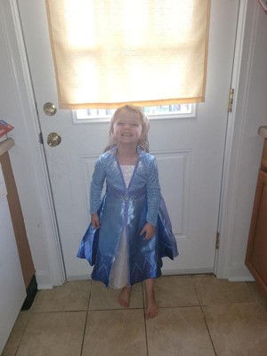 [This review was collected as part of a promotion.] We love this Elsa dress! It's a little big now, but my daughter will grow into it. The material is beautiful. This is perfect for Frozen & Elsa fans!