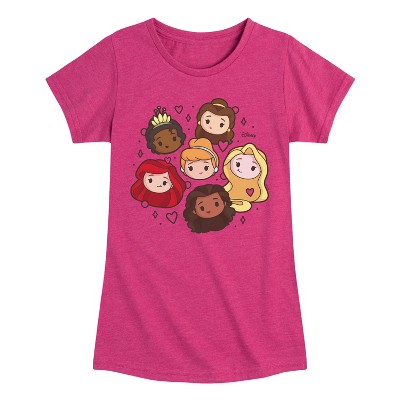 Girls' Disney Princess Princess Group Chibi Kawaii Fitted Short Sleeve Graphic T-Shirt - Heather Fuchsia - Medium