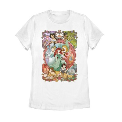 Women's - Disney Princess - Princess Silhouettes Flowers Cropped Graphic T-Shirt - 1 of 4