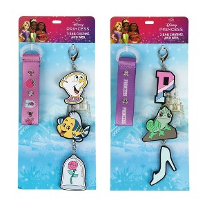 Bring Disney Princess magic everywhere with these adorable bag charm clips! Each colorful strap comes with charms featuring favorite sidekicks like Chip, Flounder, Pascal, and more. Perfect for backpacks, totes, or keyrings, kids can mix and match or collect both sets to complete their enchanting princess collection.
