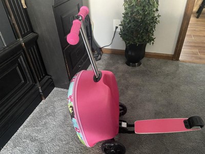This carry on scooter is amazing! We are flying internationally soon and cannot wait to bring this. Not only will this make the airport experience more fun but she can also have a scooter to ride when we're at our destination! The scooter is very smooth and the suitcase is sturdy and cute.