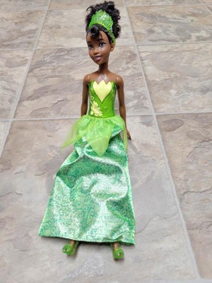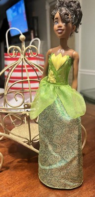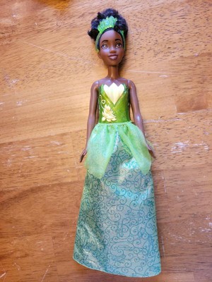 Meet this Princess Tiana doll, inspired by the ambitious and determined heroine from Disney's The Princess and the Frog. This posable fashion doll is shown in a sparkling outfit and accessories that include shoes and a tiara. In her signature look from the movie, this Tiana doll is ready for any adventure! Doll cannot stand alone. Colors and decorations may vary.