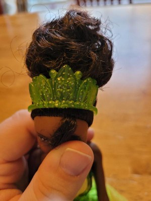 [This review was collected as part of a promotion.] The Princess Tiana doll is a great starter doll for ages 3 and up. My daughter loves her dress and shoes, she says they are cute. Her dress is a hard plastic for the top and fabric for the bottom that is removable to make a bathing suit look. The only dislike I have is that the crown is attached to the head with the clear rubber bands. If you take the rubber bands off then the crown won't stay.