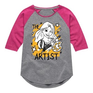 Disney Princess - Rapunzel The Artist - Toddler & Youth Girls Raglan Graphic T-Shirt - Add a touch of magic to your wardrobe with this graphic apparel featuring iconic Disney designs. Showcasing beloved characters and classic imagery, each piece combines nostalgic charm with modern style—perfect for Disney fans of all ages. Whether you're headed to the parks or just adding whimsy to your everyday look, these graphics bring the magic to life.