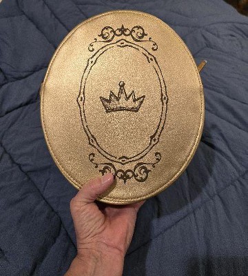 CUSTOM DESIGN: This fun 3D crossbody bag has been custom-designed to resemble the Evil Queen's magic mirror - complete with embossed rhinestones and a three-way lenticular applique that shifts between images of Snow White, the Queen, and the mirror's face!