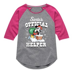 Girls' - Disney - Santas Official Helper Shirt Tail Raglan Graphic T-shirt - 1 of 3
