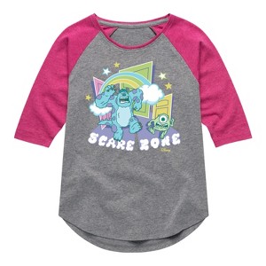 Monsters Inc. - Scare Zone In The Clouds - Toddler & Youth Girls Raglan Graphic T-Shirt - Add a touch of magic to your wardrobe with this graphic apparel featuring iconic Disney designs. Showcasing beloved characters and classic imagery, each piece combines nostalgic charm with modern style—perfect for Disney fans of all ages. Whether you're headed to the parks or just adding whimsy to your everyday look, these graphics bring the magic to life.