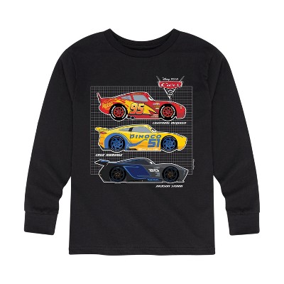 Disney's Cars - Side Profiles Grid - Toddler And Youth Long Sleeve Graphic T-Shirt - Hit the road in style with Cars graphic apparel, featuring bold and colorful designs of Lightning McQueen, Mater, and the entire racing crew. Each piece captures the high-speed excitement, friendship, and charm of Radiator Springs, bringing Pixar’s beloved automotive world to life. Perfect for fans of all ages who love adventure, racing, and heartwarming moments from the Cars universe, this collection adds fun and energy to any wardrobe.