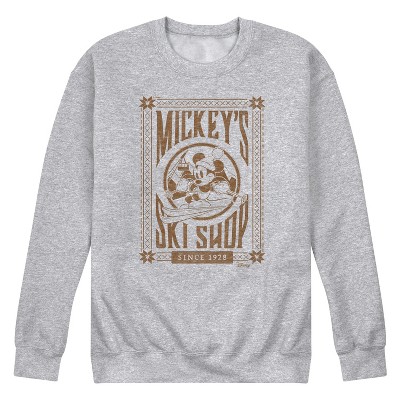 Men's Disney Ski Lift Heart Mickey And Minnie Graphic Fleece Sweatshirt - Athletic Heather - X-Large