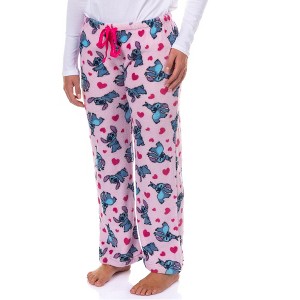 All-Over Stitch Design: These pajama bottoms feature a vibrant, all-over Stitch print accented with playful hearts on a soft light pink backdrop. The detailed pattern adds character to your loungewear, making it fun and comfortable for everyday wear.