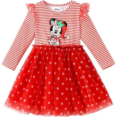 Product Name: Disney Stitch Toddler Dress Ruffle Long-Sleeve Mesh Overlay Tulle Dress