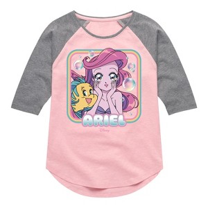 Girls' - Disney - Surprise Ariel & Flounder Shirt Tail Raglan Graphic T-shirt