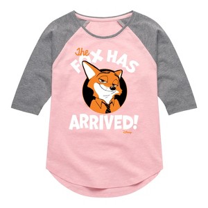 Disney - The Fox Has Arrived - Toddler & Youth Girls Raglan Graphic T-Shirt - Add a touch of magic to your wardrobe with this graphic apparel featuring iconic Disney designs. Showcasing beloved characters and classic imagery, each piece combines nostalgic charm with modern style—perfect for Disney fans of all ages. Whether you're headed to the parks or just adding whimsy to your everyday look, these graphics bring the magic to life.