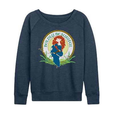 Women's Disney The Lion King Lightweight French Terry Wide Neck Long Sleeve Graphic Shirt - Heather Indigo - Small