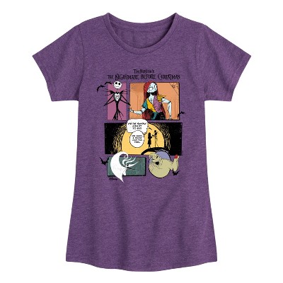Girls' Disney The Nightmare Before Christmas Fitted Short Sleeve Graphic T-Shirt - Heather Purple - 3T