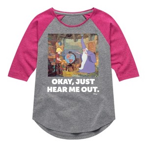 Disney - The Sword And The Stone - Okay, Just Hear Me Out - Toddler & Youth Girls Raglan Graphic T-Shirt - Add a touch of magic to your wardrobe with this graphic apparel featuring iconic Disney designs. Showcasing beloved characters and classic imagery, each piece combines nostalgic charm with modern style—perfect for Disney fans of all ages. Whether you're headed to the parks or just adding whimsy to your everyday look, these graphics bring the magic to life.
